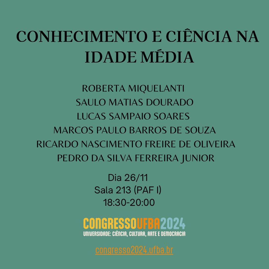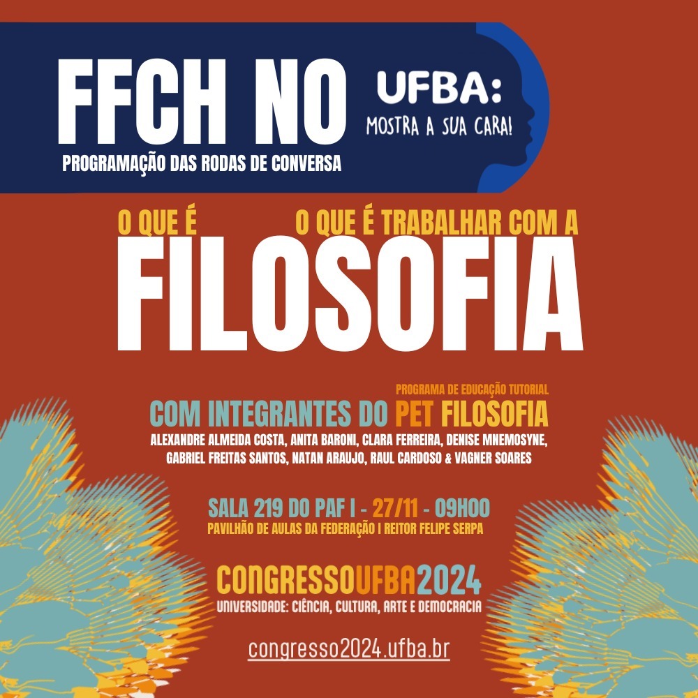 Enviado por filosofia em seg, 25/11/2024 - 14:24 Abaixo você confere a participação do Departamento de Filosofia no Congresso UFBA - 2024. Data de Início: 25/11/2024 - 12:00Data de Término: 28/11/2024 - 21:00Local: UFBA
